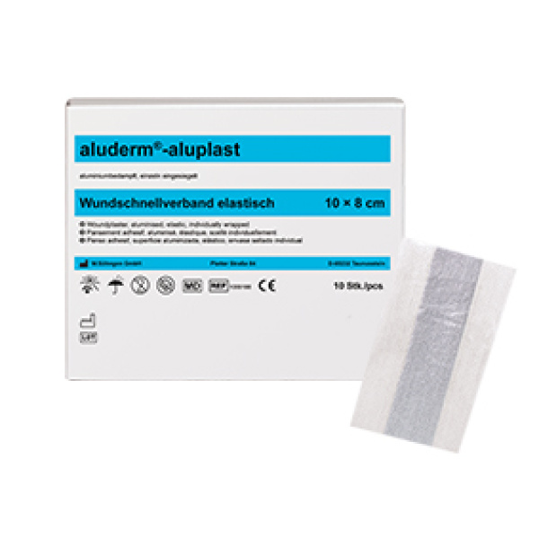 spesielle sårbandasjeplaster med aluminisert og absorberende fleece. aluderm® fester seg ikke til såret, frynser ikke, er svært absorberende, kan hjelpe huddannelse og tilheling, og puster.