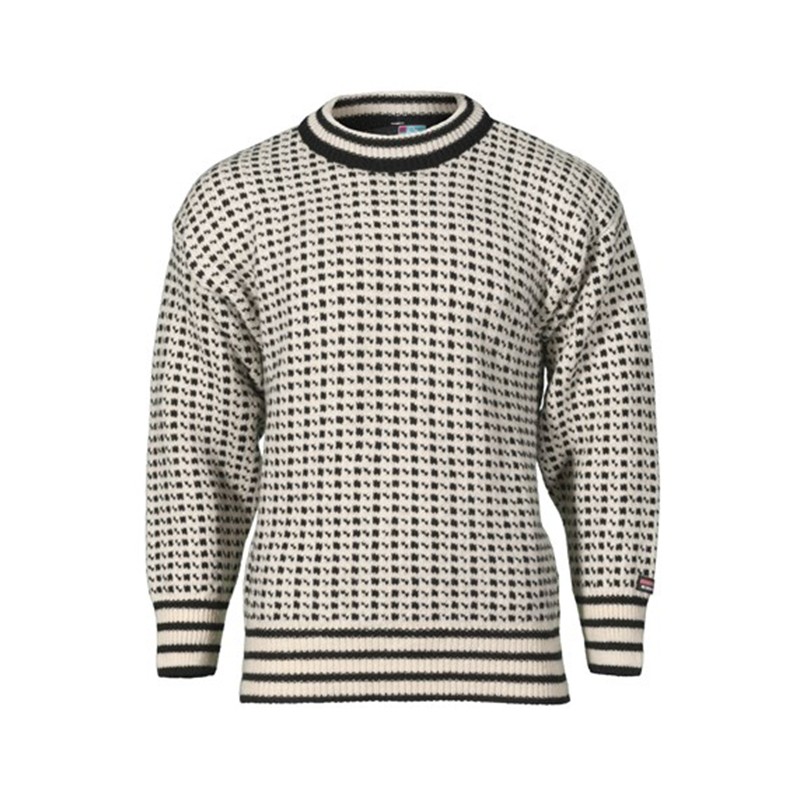 Islender er vår mest populære modell. Den finnes i hvitt/sort, sort/hvitt og rød/sort. Den hvite/sorte finnes også med hals og glidelås. Produsert i 100% norsk ull