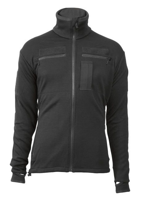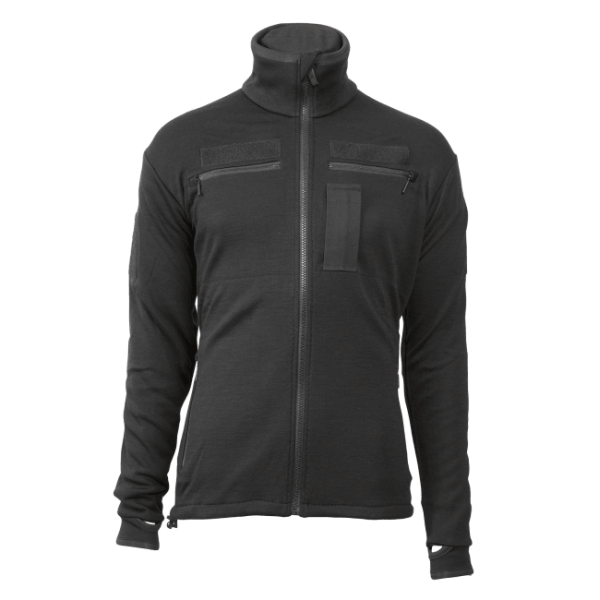 Brynje Antarctic jakke u/ vindbeskyttelse, med to brystlommer og to lave lommer med glidelås. Hel glidelås i front, stramming nederst og tommelgrep. Jakken har distinksjonsklaff på brystet, borrelås på begge overarmer for avdelingsmerker og borrelås på brystet for navnestripe. Perfekt som mellombekledning.