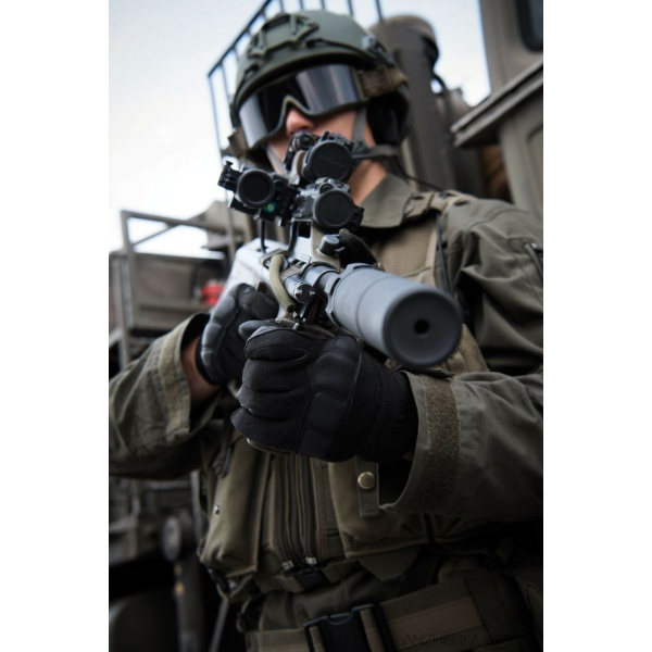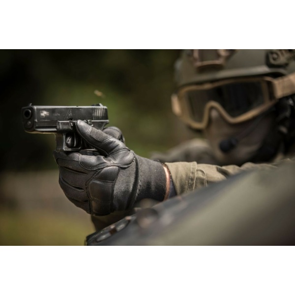 Ekstremt slitesterk allroundhanske med høy grad av fingerferdighet. Utviklet for ubegrenset håndtering av våpen. Alle brukte materialer er flammehemmende (i henhold til EN 407, flammeadferd nivå 4)