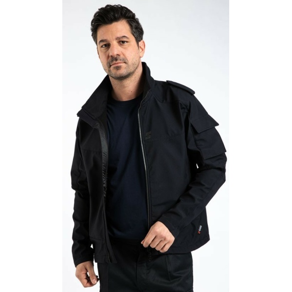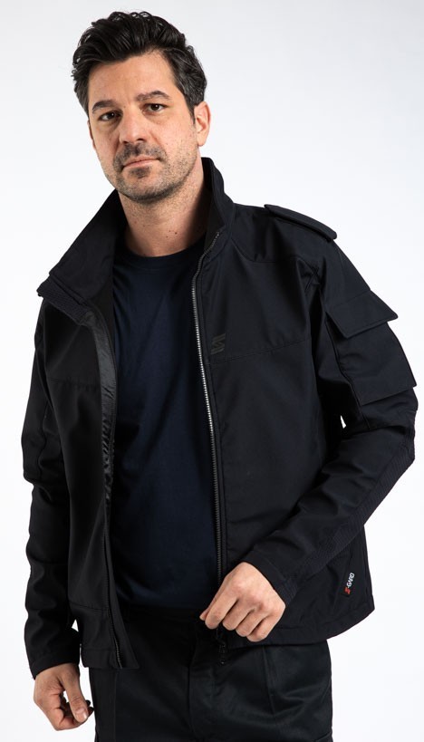 Elastisk WINDSTOPPER® softshell: OFFICER PRO funksjonsjakke med GORE® WINDSTOPPER®-membran beskytter deg mot fuktighet og kulde mens du utfører dine daglige plikter. Denne arbeidsjakken er vindtett, vannavvisende og svært pustende. Elastiske innlegg øker bevegelsesfriheten. Funksjonene til denne lette jakken inkluderer en stående krage, ergonomisk formede ermer, lengre bak og en toveis glidelås i full lengde.